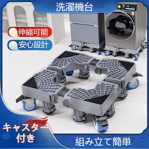 【商品説明】 伸縮式であらゆる洗濯機に対応できる洗濯機台。 新採用の「ジャッキ」によりしっかり固定 安定感抜群!ドラム式洗濯機にも対応します。 ゴムパッド付きで、脱水などの洗濯機の振動を 和らげます。 高さUPで排水スムーズ。