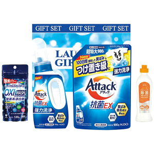 ランドリーバラエティギフト洗濯洗剤のお得なバラエティセットメーカー品番 : LV-5C 内容物 : 750gアタック抗菌EX洗剤・240g台所用洗剤除菌フレッシュオレンジ各1本・900gアタック抗菌EX洗剤(詰替用)...