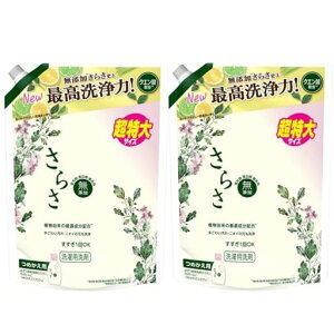 New さらさ史上最高の洗浄力 天然洗浄成分UPクエン酸配合*1蛍光剤・漂白剤・着色料 無添加植物由来の厳選成分配合*2手ごわい汚れ・ニオイの元も洗浄天然酵素を配合した処方家族みんなの衣類もOK肌を優しく包み込む*1 洗浄補助剤として *