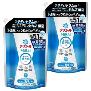 P&G アリエール MiRAi(ミライ) つめかえウルトラジャンボサイズ 洗浄プラス / 消臭プラス 特許手法!菌を予防する新世代の濃縮洗剤「アリエールMiRAi」を新発売。 ・洗ったあとまで菌予防で...