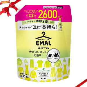 ◆商品名:エマール 洗濯用洗剤 液体 KAO 花王 おしゃれ着用 リフレッシュグリーン 大容量 つめかえ 2600ml伸びヨレ戻して元通りで、洗ったほうが、逆に長持ち!洗たく用洗剤(おしゃれ着用)。ニットのキレイ寿命※2倍...