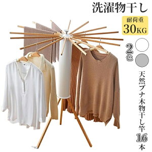 【特典付き】室内物干し 円筒 物干しスタンド 折りたたみ収納 物干しラック 洗濯物干し dura-dry 布団干し 部屋干し 多機能ベランダ 組立て不要 省スペース 16本ブナ材物干し竿 幅約110×奥行約60×高さ約120cm...