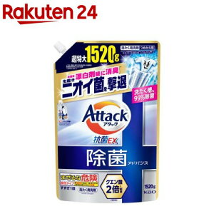 お店TOP>日用品>洗濯用品>洗濯洗剤>液体洗剤 衣類用(詰替)>アタック除菌アドバンス つめかえ用 (1520g)【アタック除菌アドバンス つめかえ用の商品詳細】●超特大1520g●衣類を漂白剤級に消臭※1...