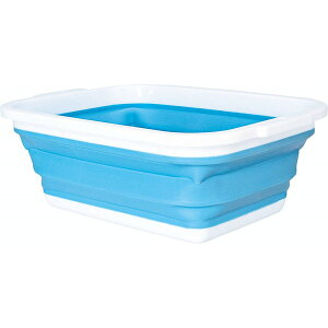 カラー:ブルー、グレー容量:約23L1. 水切り栓付き排水時は本体を傾ける必要がなく、すすぎや脱水がやりやすい。2. 取っ手運びやすくて熱くなりにくい。3. 底辺に滑り止め設計4. 使わない時はコンパクトに畳めて収納しやすい使用時の高さ