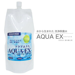 【電解アルカリ水】アクアエクス 1000ml 詰め替え用 商品特徴 100%水からできた洗剤で、これ一本で消臭・洗浄・除菌・防錆できちゃいます♪ とりわけ油汚れや皮脂汚れに強く、換気扇回りやコンロ等にもってこいです。 水からできて