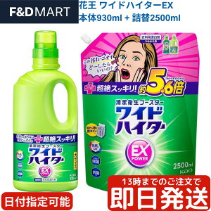 930ml(大容量) + 詰め替え 2.5kg 花王 詰め替え 大容量 漂白剤 酸素系 衣類用 消臭 除菌 部屋干し各商品名・花王 ワイドハイター EXパワー 大容量本体 930ml(大容量) + 詰め替え...