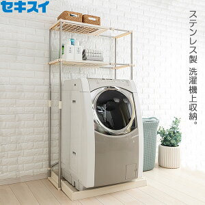 お買得ランドリーラック【積水樹脂】洗濯機上のスペースを有効活用できます。設置場所に合わせて幅が伸縮します。 下段の棚も高さ調節可能。小物が置きやすいメッシュ棚を採用。(棚は伸縮しません)ドライバー不要の簡単組み立て。