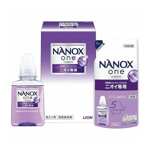 【商品特徴】部屋干し臭が気になる方へおすすめ。【箱サイズ(cm)】12.7×6.5×23.9cm【現品サイズ・内容】380gナノックスワンニオイ専用1本・280gナノックスワンニオイ専用(詰替用)1個...