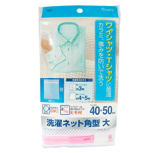 ●型くずれや毛羽立ちを防ぐ角型せんたくネット。ファスナーの開け閉めが楽にできるヒモ付き。洗濯物や洗濯槽の痛みを防ぐ、ファスナーカバー付き。ワイシャツなら約3枚、Tシャツなら約4〜5枚が入ります。乾燥機の使用OK。・サイズ(約