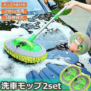 洗車ブラシ 洗車モップ アルミ伸縮ポール 洗車スポンジ 柄付き 柔らかい シェニールモップ 洗車用具 傷付けず 吸水 速乾 軽量 洗車グッズ 乾湿両用 ホコリ取り 水切り 車内外対応