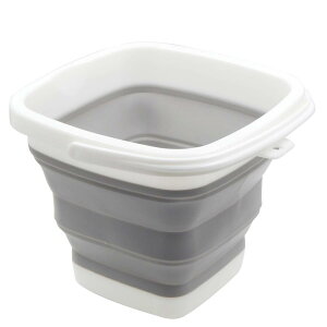 ブルー/-/-・スクエア型の折りたたみバケツです。・容量は約10リットルです。・折りたたむとコンパクトになるので収納が楽ちんになります。・洗車や掃除、アウトドアなど様々な場面で活躍します。・緊急時の防災グッズとしても使用でき