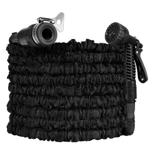 5m→15m 伸びるホース 7モード散水ノズル付 軽量 耐凍結設計 洗車 ガーデニング兼用 散水 コンパクト収納 玄関・ベランダ・庭対応 大掃除 水撒き用 耐破裂 ブラック 【3倍伸縮するで業務用洗車も可能】 5m→15mの伸縮ホース