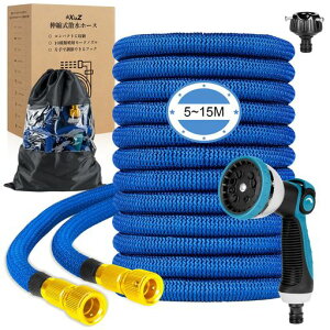 【3倍に伸びる】:収納時5m、最大15m、ホースを蛇口に取り付けてると、5mから15mまでホースが水圧で約3倍に伸びる便利なホース。(水圧によって最大限まで伸びれない場合があります)【超軽量素材】:使用しない時は...