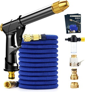 高圧洗浄ノズルセット 洗車 電源不要 自動伸縮 散水ホース 水道ホース 泡モード 水モード ノズル 収納便利 庭 花園 水撒き 掃除 伸びる水管 2.5〜10m 素材合金、ラテックス、ポリ...