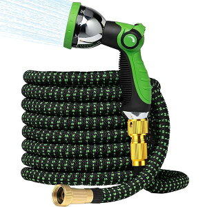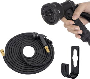 3倍伸びるホース ガーデンホース 超軽量素材 耐久性が高い 洗車 園芸 庭用 屋外 ノズル/ホルダー/収納バーグ付きブランドKOCOMARTカラーブラッ...