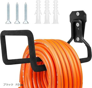 ース掛け 工具 壁掛け収納 吊り下げ金具 ガレージ用 自転車壁掛け 散水 洗車 園芸 農具 整理パーツブランドトカリリカラーブラック 穴3つ「省スペースホースフックでスッキリ収納...