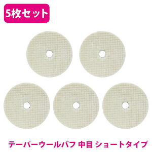幅広く使える【中目タイプ】 研磨から仕上げまで研磨剤やポリッシャーの組み合わせによって幅広く活躍する大変使い勝手の良いバフです。 ●作業性に優れた【テーパー形状】 傾斜が付いたテーパータイプのウールバフで隅までポリッシ
