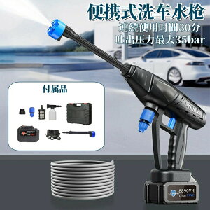 【商品仕様】 ■基本仕様 ・最大圧力:40Bar(4.0MPa) ・流量:4L/min ・連続使用時間:30-40分 ・充電時間:約3時間 ・ホース長:5m ・給水高:1.5m ・重量:1.45kg ・射程:最大8m ■セット内容 本...