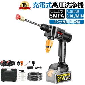 【コードレス・場所を選ばず使える】 無線タイプ持ち運びが簡単で、電源タップとはおさらば。ポータブル高圧洗浄機のガンと本体が一体化したハンディウォッシャーです。1個5.0Ah大容量バッテリーが付き、約40分を連続使用可能、場所を選