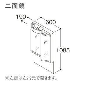 TOTO 洗面化粧台 化粧鏡 LMAS060A2GDC1G Aシリーズ 2面鏡 LEDランプ エコミラーあり 間口600mm ※画像はイメージです。代表写真の場合があります。 カテゴリ:洗面所...
