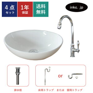 洗面ボウルや蛇口(水栓)、排水栓、トラップをセットにした3〜4点セット!単水栓(お水のみ)、混合水栓(お湯・お水の両方)のセットをご用意しております。