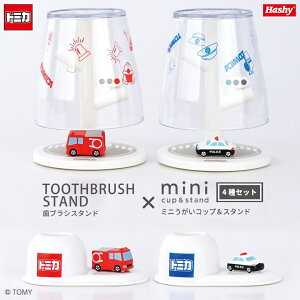 はたらく車の消防車とパトカー、全種がセットになって登場!!! ◆ミニコップ&スタンド 容量90mlの小さなうがい用コップと、はたらく車のフィギュアがちょこんとのったスタンドのセットです。 マウスウォッシュ・うがい薬など少量使い