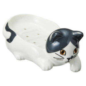 ネコちゃんが洗面台をのぞきこんでいるかわいいソープディッシュ水が切れる構造なので石けんがぬるぬる溶けず、いつまでも清潔にご使用いただけます【あすつく対象外商品】【お取り寄せ商品、4〜7営業日前後で発送予定】