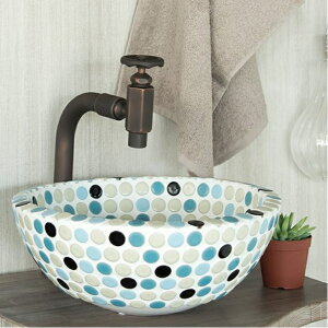 商品情報サイズΦ335×150mm重さ 6kg材質磁器・タイル色ブルー系商品説明対応水栓:単水栓・混合水栓設置タイプ:置き型、埋め込み*タイル製ボウルのお手入れについて*浸透性防護材によるオーバーコーティングが施してあるため、お手入