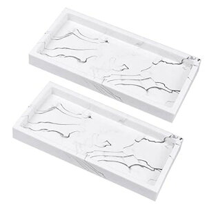 形状 長方形 お洒落な大理石柄の洗面台収納トレイです。ゴチャゴチャして散らかりがちな洗面台もこれ1つでスッキリ!台は取り外し可能なので水洗いでいつでも衛生的です。 サイズ:(小)28.5×14×5cm(大)28