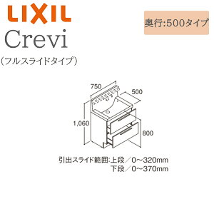 LIXIL/INAX 洗面化粧台クレヴィ 化粧台本体のみ RBFH-755JFY-A 奥行500タイプ 間口750mm フルスライドタイプ 引出スライド範囲:上段/0~320mm 下段/0~370mm...
