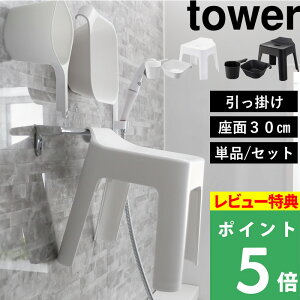 tower / 引っ掛け風呂イス SH30 + マグネット&引っ掛け湯おけ セット 浮かせる収納で衛生的 人気のお風呂アイテムセット タワーシリーズの大人気お風呂グッズがセットで登場。