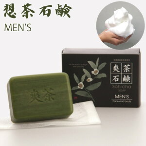商品詳細 商品名 想茶石鹸 MEN'S 商品説明 無防腐剤・植物油脂由来の石鹸に、緑茶粉末(静岡県産)が想茶石鹸の2倍配合された、すっきりと汚れを落とし体や汗の匂い抑える男性のための石鹸です。 汚れを吸着...