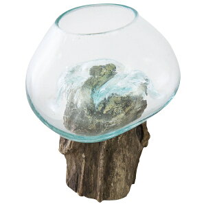ガラスオブジェ オブジェ ガラス 置き物 流木 アート 1点もの ●世界に一つ/天然木の“流木”の上に、まだ熱いガラスの器をそっと置いて、完成した形が「グラス オブジェ」。 ●流木の形に沿ってグラスの底面が形