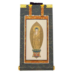 浄土宗のご本尊、阿弥陀如来(舟立弥陀)をあらわした、はせがわオリジナルデザインの掛け軸です。 各宗派の一番理想とする仏様をご本尊といい、仏の姿を絵であらわしたものを絵像と言います。お仏壇の中央上段に掛けてお祀りします...