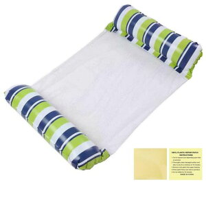 【製品仕様】商品内容は、ウォーターハンモック本体とビニール補修用テープ2枚です。ウォーターハンモックのサイズは70cmx130cm、膨らんだサイズは70cmx120cm、ビニール補修用テープのサイズは7cmx7cm、重量は約250g、...