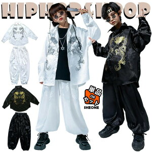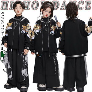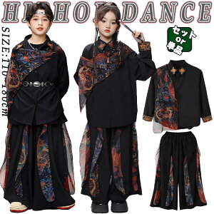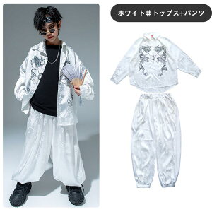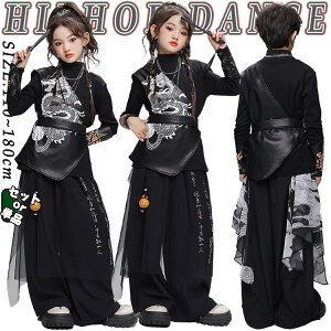 龍柄 黒色 白色 浮世絵 スーツセット 個性派 中華風 チャイナ風 キッズ ダンス衣装 セットアップ 男の子 女の子 ジャケット 長袖 半袖 シャツ トップス パンツ おしゃれ ジャズダンス