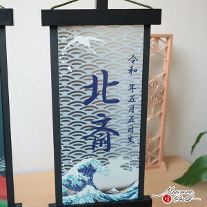 サイズ 幅 約15.5cm × 奥行 約10cm × 高さ 約41cm 凱風快晴(赤富士柄) 神奈川沖浪裏(波千鳥柄) 業界初 メタリック名前旗 葛飾北斎 ※こちらの別売りの五月人形は、当ショップが販売致しております「兜飾り」をご参照...