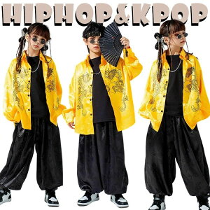 【2024新着】龍柄 黄色 浮世絵 スーツセット 個性派 中華風 チャイナ風 キッズ ダンス衣装 セットアップ 男の子 女の子 ジャケット 長袖 半袖 シャツ トップス パンツ おしゃれ ジャ