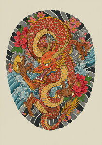 お部屋のインテリアとしてもお使いいただけます。検索用: 布 インテリア タペストリー 昭和レトロ 入れ墨風