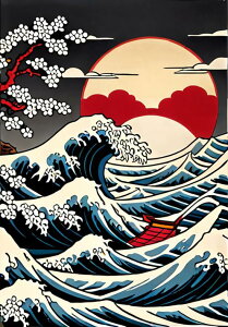 タペストリー 昭和レトロ 入れ墨風 部屋 アート グラフィック 波 海 桜 太陽 木 タペストリー 和モダン 和柄 浮世絵風 和柄 刺青風 昭和レトロ 壁掛け 大判