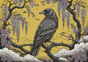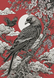 タペストリー 昭和レトロ 入れ墨風 部屋 アート グラフィック カラス 藤 木 鳥 自然 タペストリー 和風 和柄 入れ墨風 浮世絵風 ハロウィン インテリア 大き