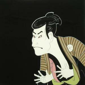 ギフト対応 江戸時代の浮世絵師、東洲斎写楽の代表作「三代目大谷鬼次の奴江戸兵衛」を題材にした浮世絵風呂敷。 きれいに彩色されています。 日本のおみやげとして大変喜ばれています。 ギフト袋サービス プレゼント用にご利用くださ