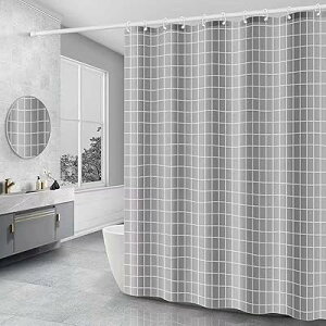 シャワーカーテン 防水防カビ加工 カーテンリング付属 シャワールーム用カーテン 浴室カーテン バスルーム バスタブ リング付属 お風呂場 浴室の目隠し (グレー格子, 120×180cm)ブランド色グレー格子モデル2...
