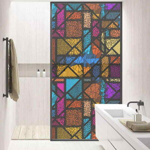 紫外線約90%カット!水で接着するから貼り直しOK!リビングの窓、キッチン、バスルーム、食器棚のガラスの目隠しにおしゃれなステンドグラス シート 2枚組 幾何学模様