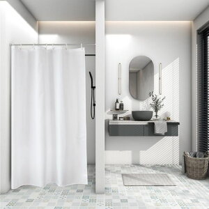 シャワー 【サイズ】:幅90x丈150cm素材:100%ポリエステル仕様:防水防カビパッケージ内容:本体*1+カーテンリング*6 【防水防カビ加工、清潔感あり】防水防カビ処置済みの100%ポリエステル製により、衛生的で清潔感に保つ。