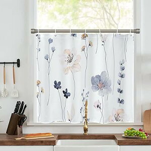 お風呂小窓カーテン 浴室窓カーテン 60cm丈 防水防カビ 防水防カビ 目隠し 断熱 シャワーカーテン 速乾 間仕切り 高密度生地 ユニットバス 浴室 花柄 リング付き 取付簡単 ブルーブランド色ブルー...
