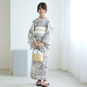 浴衣セット スイートピー・グレー商品の特長1.簡単に着られる、着崩れしないセパレートタイプの浴衣ドレスが新登場。上衣とワンピース、帯2本の4点セット。浴衣の着付けが初めてでも、着付けが簡単なので手間がかからず...