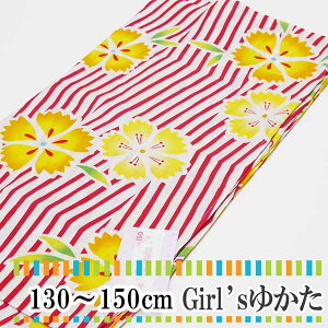 ■130 140 150ジュニア浴衣 《変わり縞と撫子》■当商品は揚げ加工がございません。(大人と同様の本仕立てです)着付けで着丈の調整が必要となりますので、ご注意くださいませ。素材 綿100%。