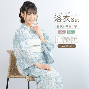 夏祭りにおすすめなジュニア浴衣3点セット夏のお祭りや花火大会にピッタリなジュニア、ハイジュニア向けの浴衣3点セットです。生地は変わり織りで、柔らかい肌触りと吸湿性に優れた綿100%です。