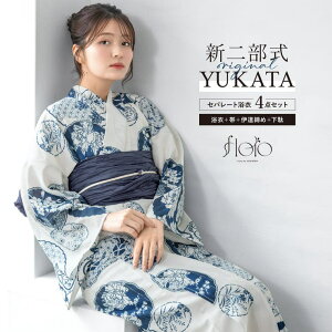 夏祭りにおすすめな二部式セパレート浴衣セットSOUBIENのプライベートブランド『floro by SOUBIEN』の女性用セパレート浴衣4点セットです。巻きスカートに浴衣型の上着を羽織ることで浴衣に見える二部式の浴衣です...